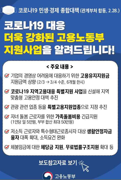 <코로나19 민생, 경제 종합대책, 출처 : 고용노동부>