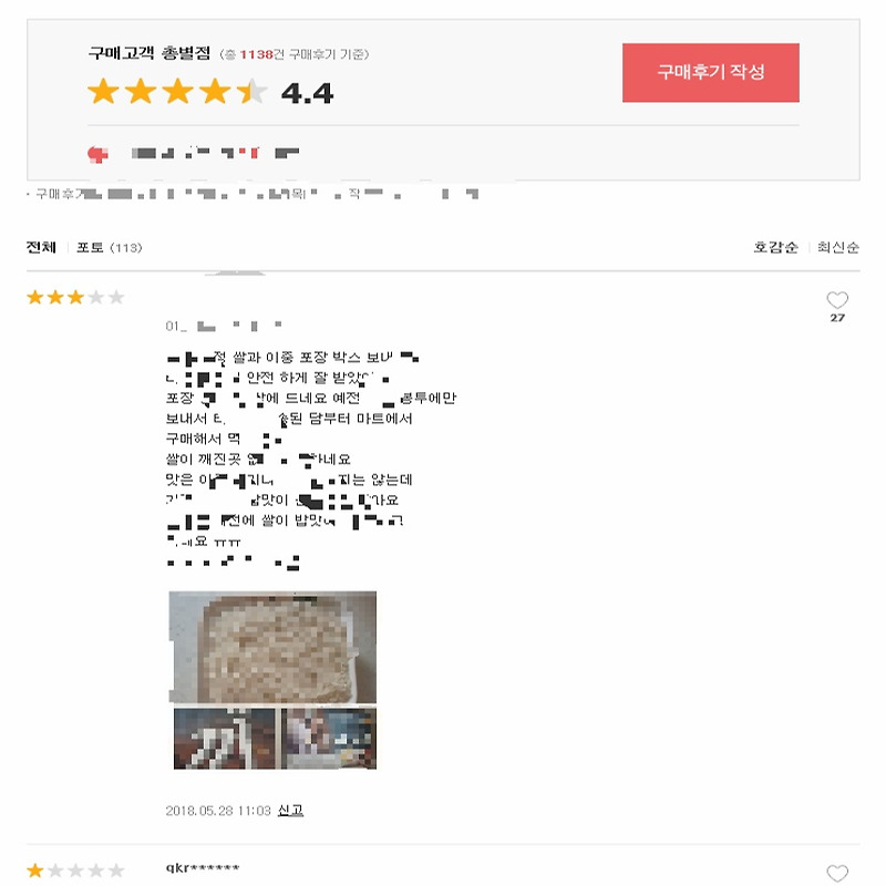 실제로 예전에 오픈마켓에서 쌀을 주문해서 배송 받았는데, 집에 온 쌀이 엉망인 것을 보고 후기를 남기려고 보니, 이미 불만글 가득한 후기가 올라와 있던 것을 뒤늦게 발견하고 왜 후기를 확인하지 않았을까 하고 자책한 적이 있습니다.